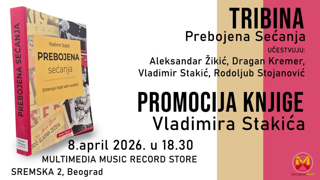 U sredu, 8. aprila od 18.30 časova, u prodavnici Multimedia Music Record Store (Sremska 2, Beograd), biće održana panel diskusija i promocija knjige „Prebojena sećanja (intervjui koje sam uradio)” autora Vladimira Stakića, pod nazivom: