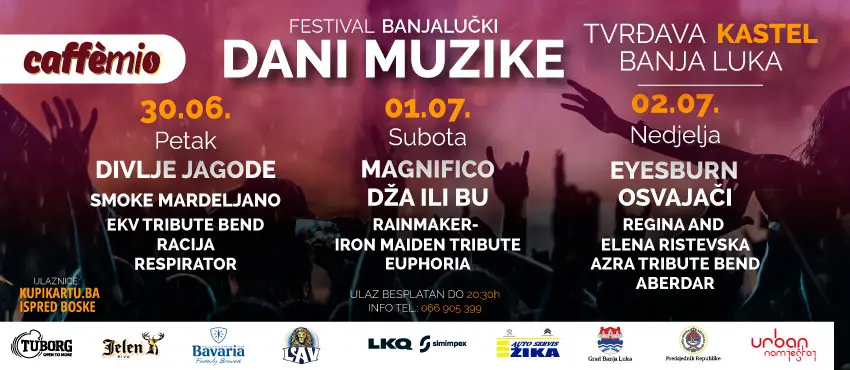 Festival Banjalučki dani muzike,ove godine će biti održan od 30. juna do 2. jula, na platou ispred tvrđave Kastel.