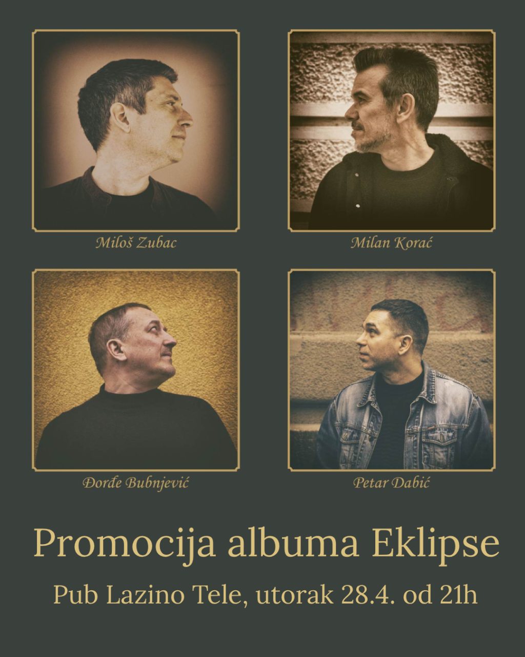 Miloš Zubac i Milan Korać, novosadski kantautorski tandem, objavili su novi album EKLIPSE – nakon albuma SPEKTAKL (2014) i SERBIA (2019) – njihovo treće zajedničko izdanje. U snimanju albuma, pored Koraća i Zubca, učestvovali su Đorđe Bubnjević i Petar Dabić. Njih četvorica koncertno će predstaviti EKLIPSE u Lazinom teletu, 28. aprila, u Novom Sadu.