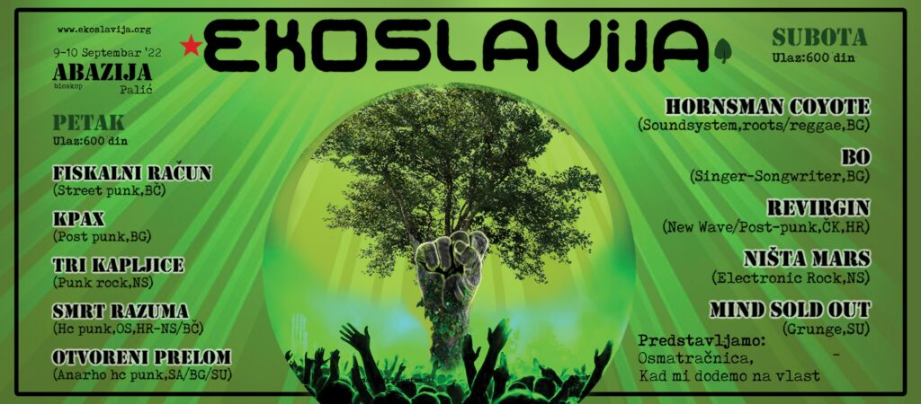 Udruženje Ekoslavija i kolektiv Združene akcije Krov nad glavom Subotica i ove godine organizuje treći festival ekologije i antifašizma, 9. i 10. septembra u bioskopu Abazija.