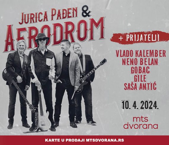 „Rokenrol džentlmeni“ – legendarni pevač i gitarista Jurica Pađen sa grupom Aerodrom nastupiće prvi put u MTS Dvorani 10. aprila 2024. godine.