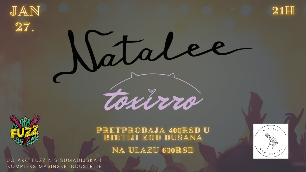 Otvaranje vrata prostora je u 21h. Karte u pretprodaji u Birtiji kod Dušana (Davidova 9) po ceni od 400rsd dok će na ulazu cena biti 600rsd.