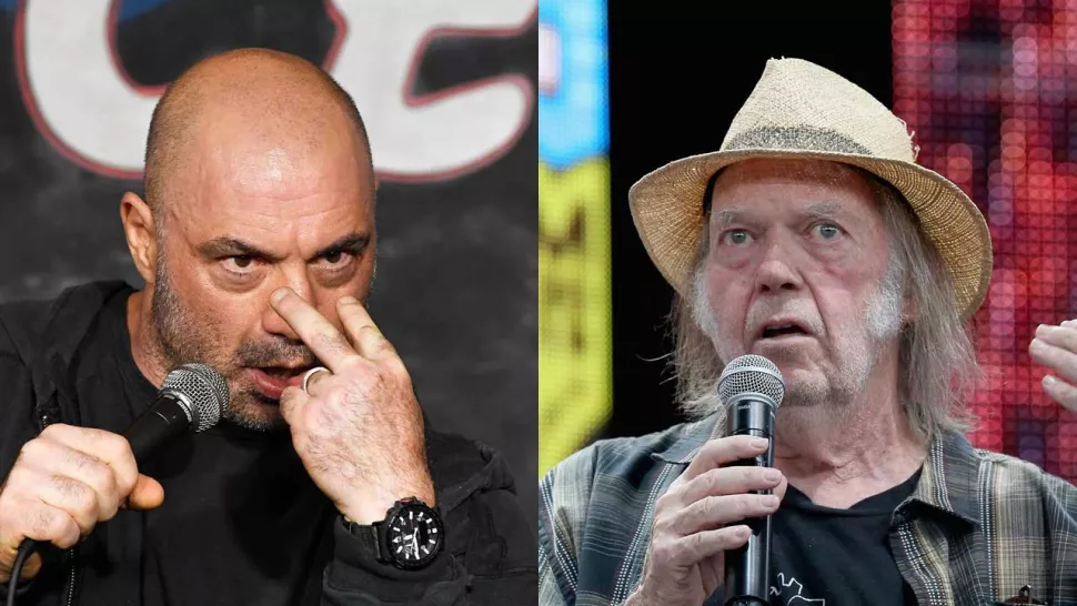 Joe Rogan (left) and Neil Young (Image credit: Michael S. Schwartz/Gary Miller/Getty Images)