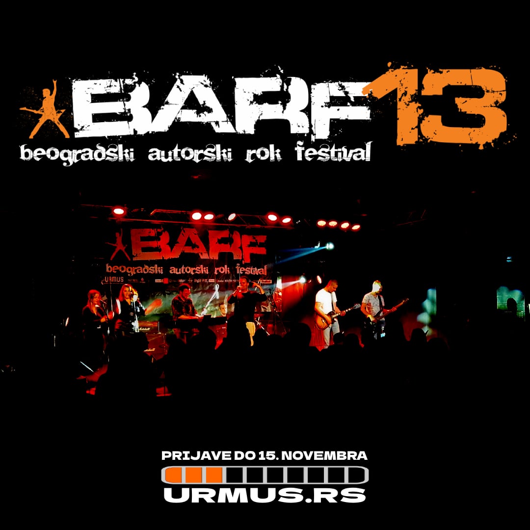 Udruženje rok muzičara Srbije (URMUS), organizator Beogradskog autorskog rok festivala, objavilo je konkurs za učešće bendova/autora na trinaestom izdanju festivala – BARF 13.
