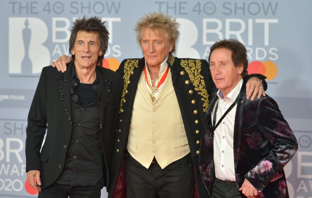 Ronnie Wood, Kenney Jones and Rod Stewart of Faces at the BRIT Awards 2020. CREDIT: Jim Dyson/Redferns/Getty