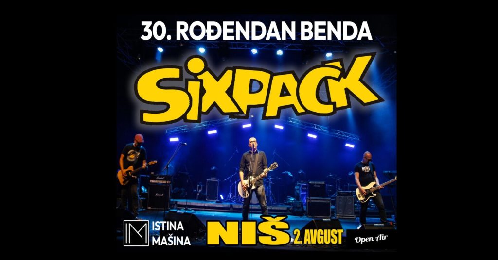 Posle uspešnih letnjih festivalskih nastupa i velikih rođendanskih koncerata u Beogradu i Zagrebu, kultni punk sastav Six Pack nastavlja proslavu 30 godina postojanja – ovoga puta u Nišu. Koncert će biti održan u subotu, 2. avgusta, u bašti kluba Istina Mašina.