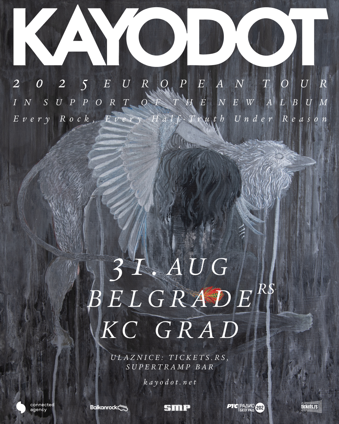 Connected Agency predstavlja: vizionarski avant-metal kolektiv Kayo Dot vraća se u Beograd dve godine nakon rasprodatog koncerta iz 2023. — ovog puta sa potpuno novim albumom Every Rock, Every Half-Truth under Reason, koji izlazi 1. avgusta.